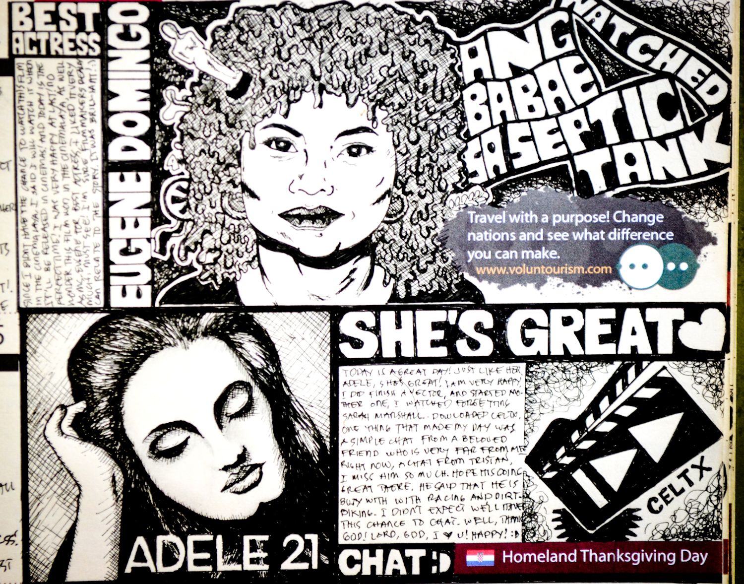 THEN, I MYSELF WAS REALLY SURPRISED OF WHAT IT HAS BECOME, A DOODLE JOURNAL! EVERY DAY, I LOG WHAT'S INSIDE MY HEAD, DRAW WHAT I WANT TO DRAW, EXPRESS MY EMOTIONS THROUGH PEN AND PAPER.